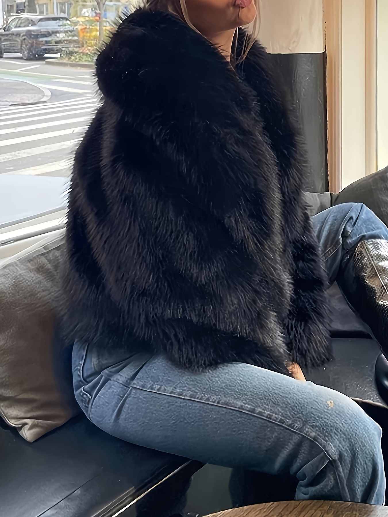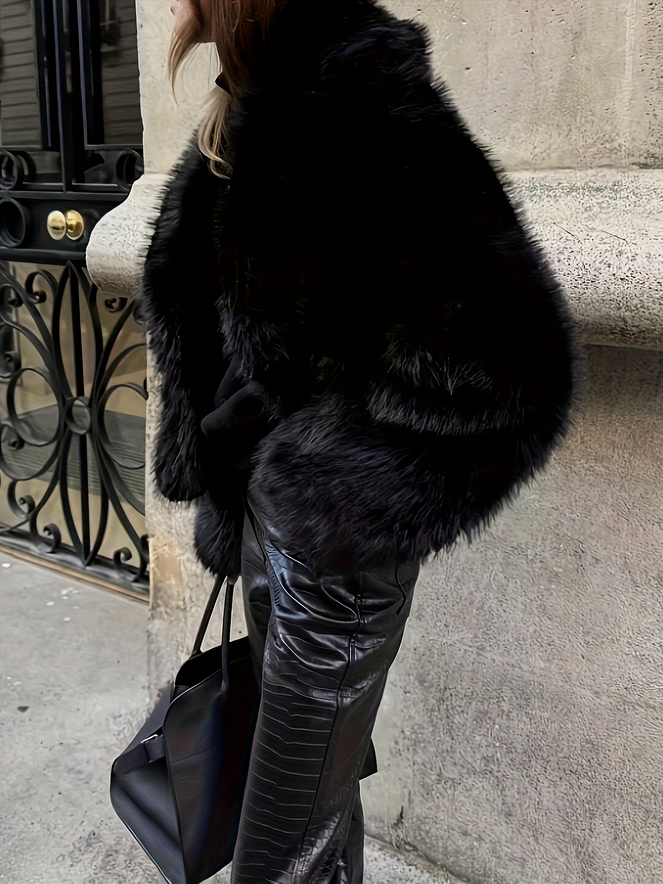 Plus Size - Women'S Plus Size Elegant Long Sleeve Faux Fur Coat - Cozy Warm Solid Color Shawl with Front Button Closure, Fluffy Lined, Slim Fit for Fall/Winter Fashion, Winter Fashion Coat | Elegant Long Sleeve Coat | Plush Lined Interior