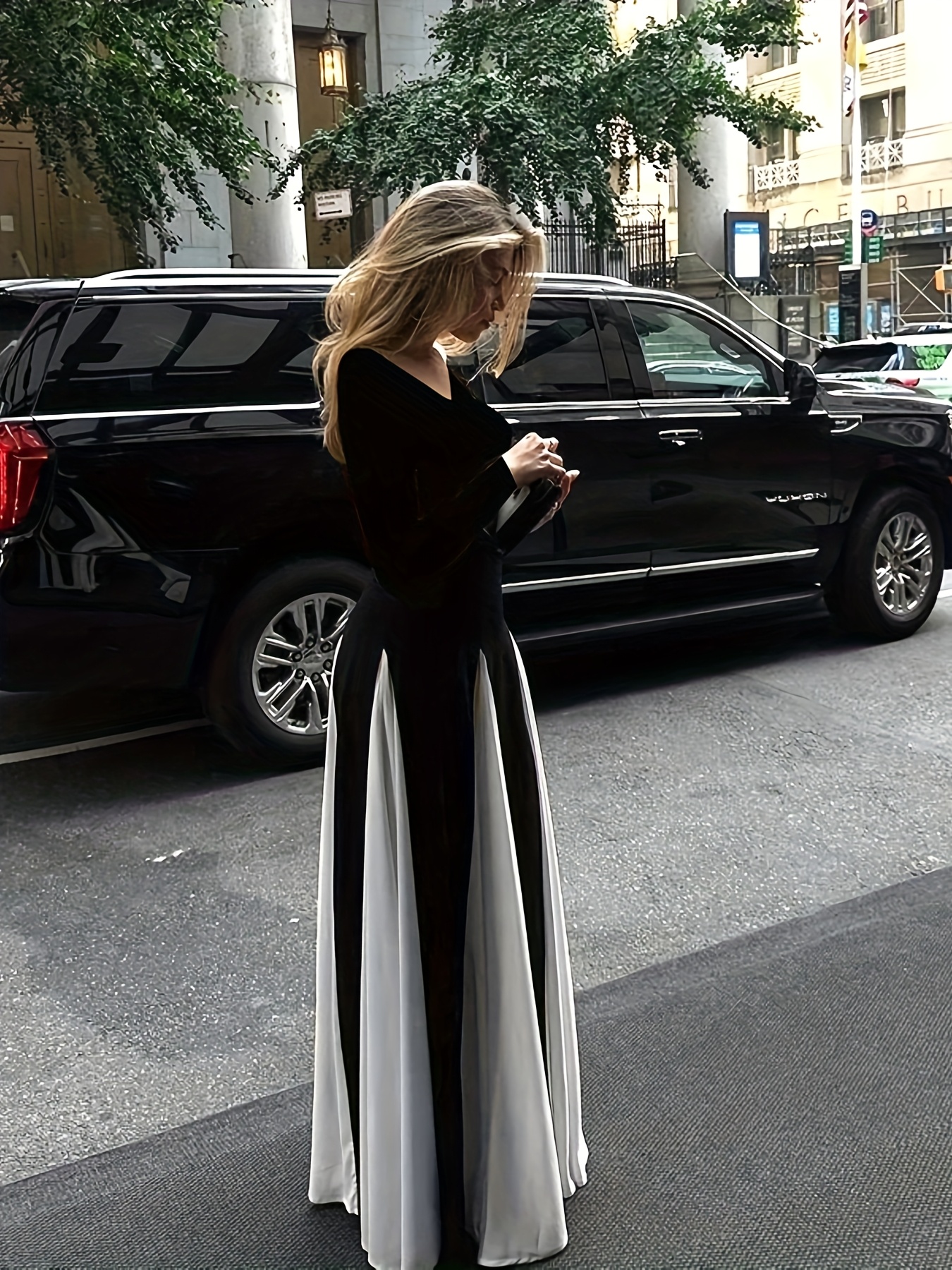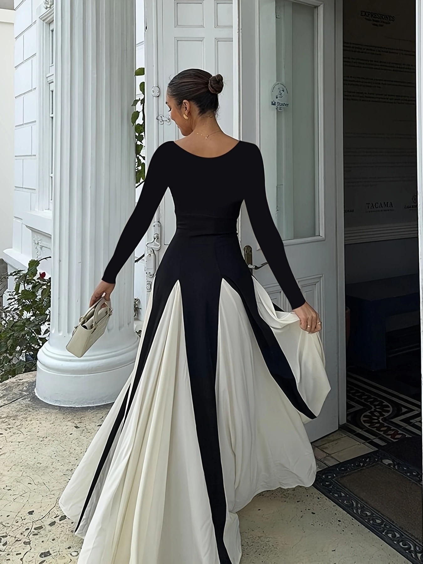 Plus Size - Plus Size, - Plus Size Fashionable Color-Blocked Long Sleeve Maxi Dress, Elegant Vacation Style, Plus Size Fashion, Plus Size Dress