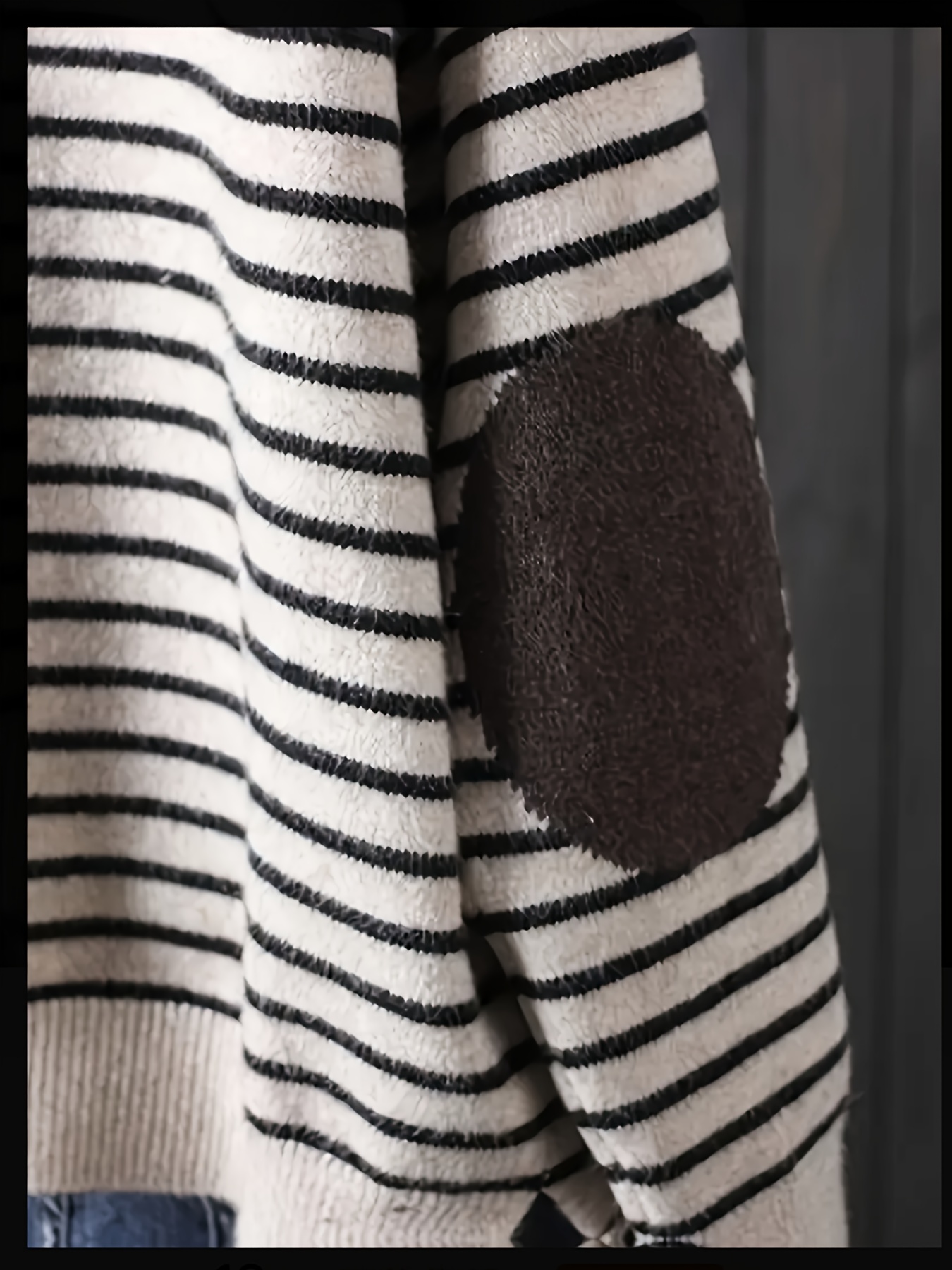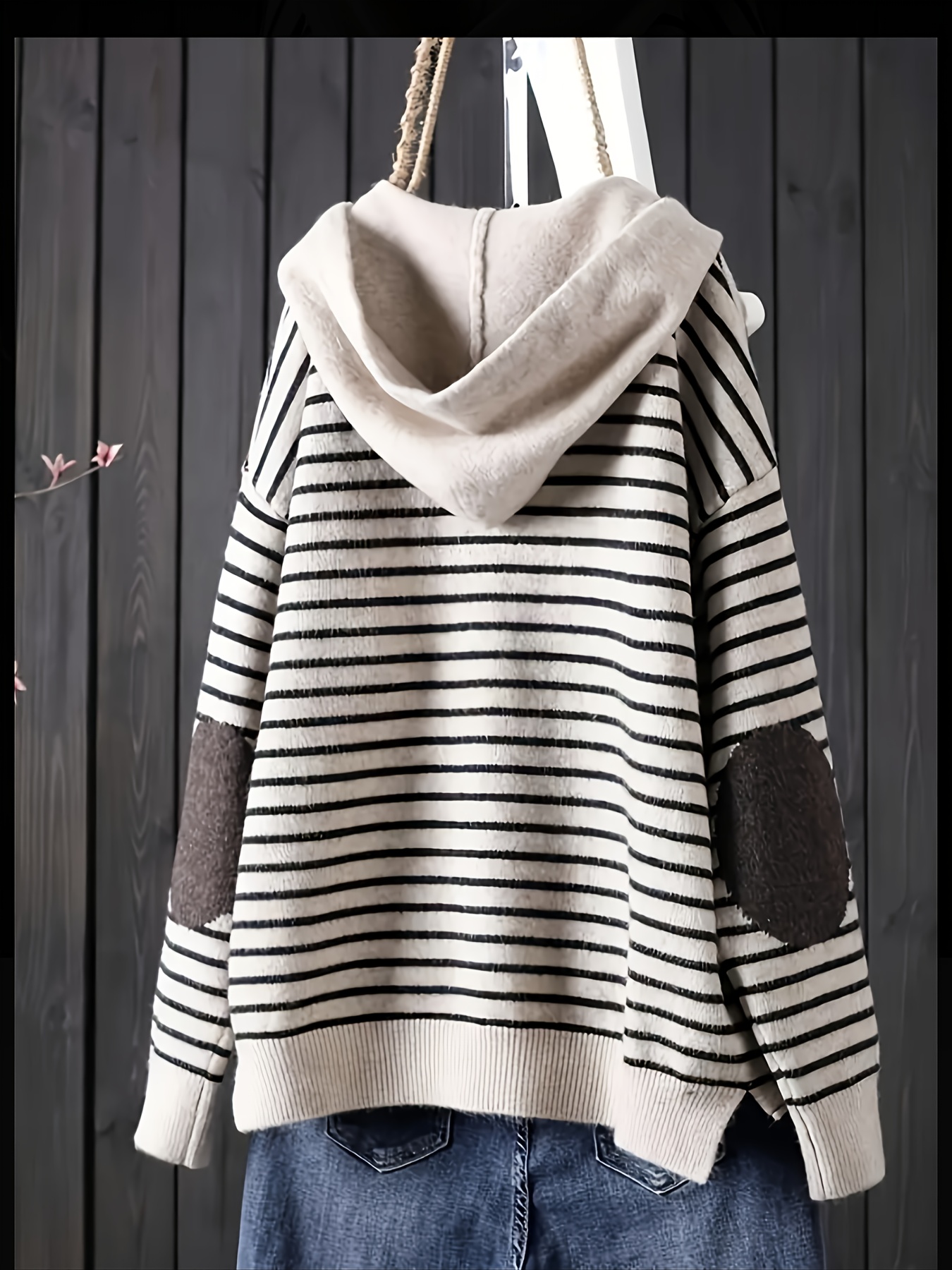 Plus Size, Plus Size Women's Elegant Oversized Hooded Sweater - Beige & Black White Striped Cardigan Jacket, Soft -like Texture Pullover for Spring/Fall Layering, Casual to Dressy Wear (No)