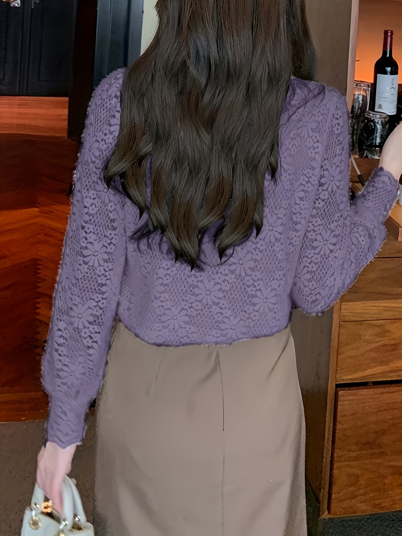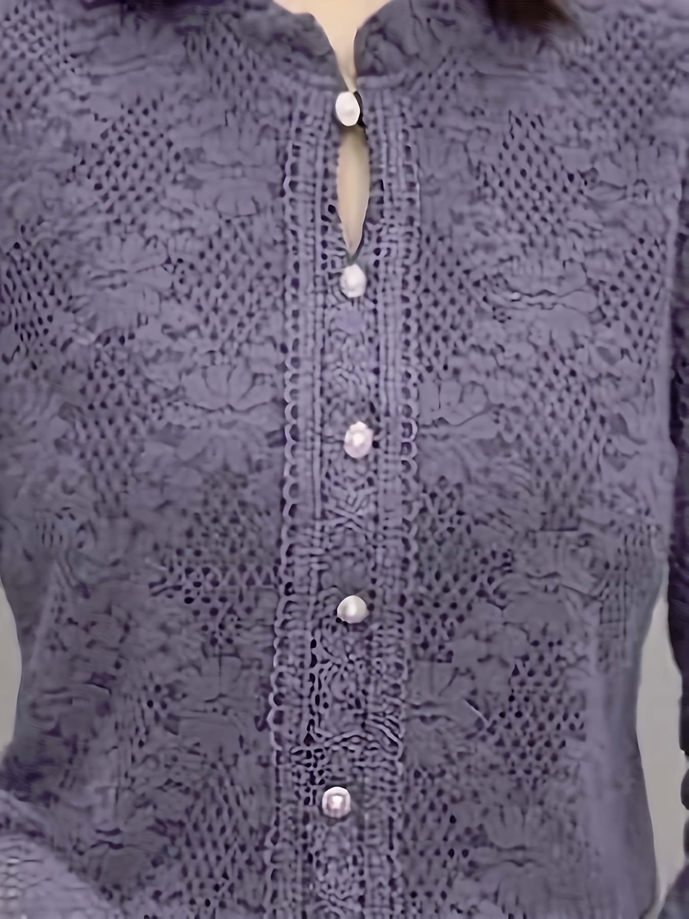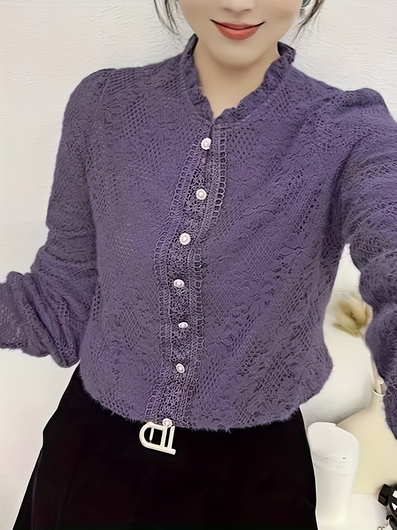 Plus Size - 1pc Elegant Lace Trim Long Sleeve Blouse for Women - Chic Round Neck, Non-Stretch Fabric, Floral Pattern, Perfect for Spring/Fall, Versatile Layering Piece, Spring Fashion Top | Floral Pattern Top | Nonstretch Material