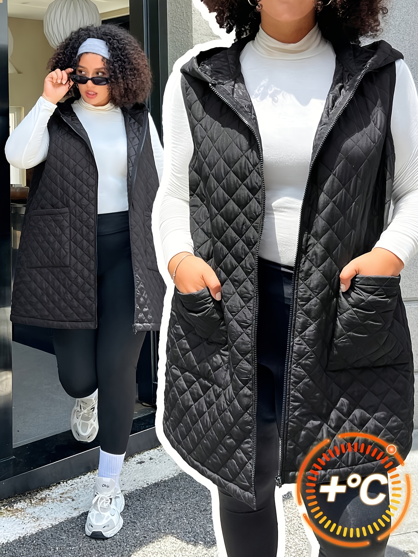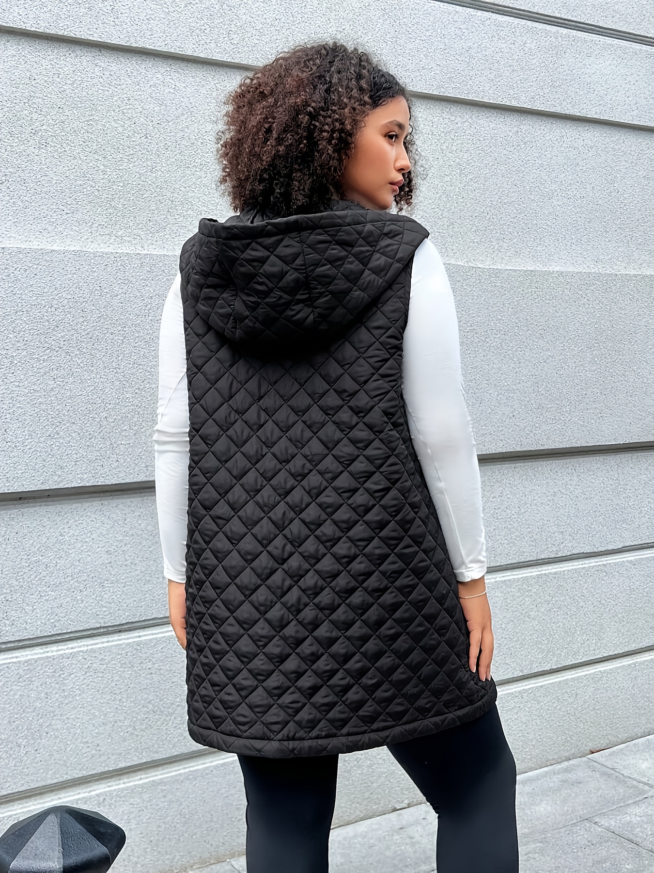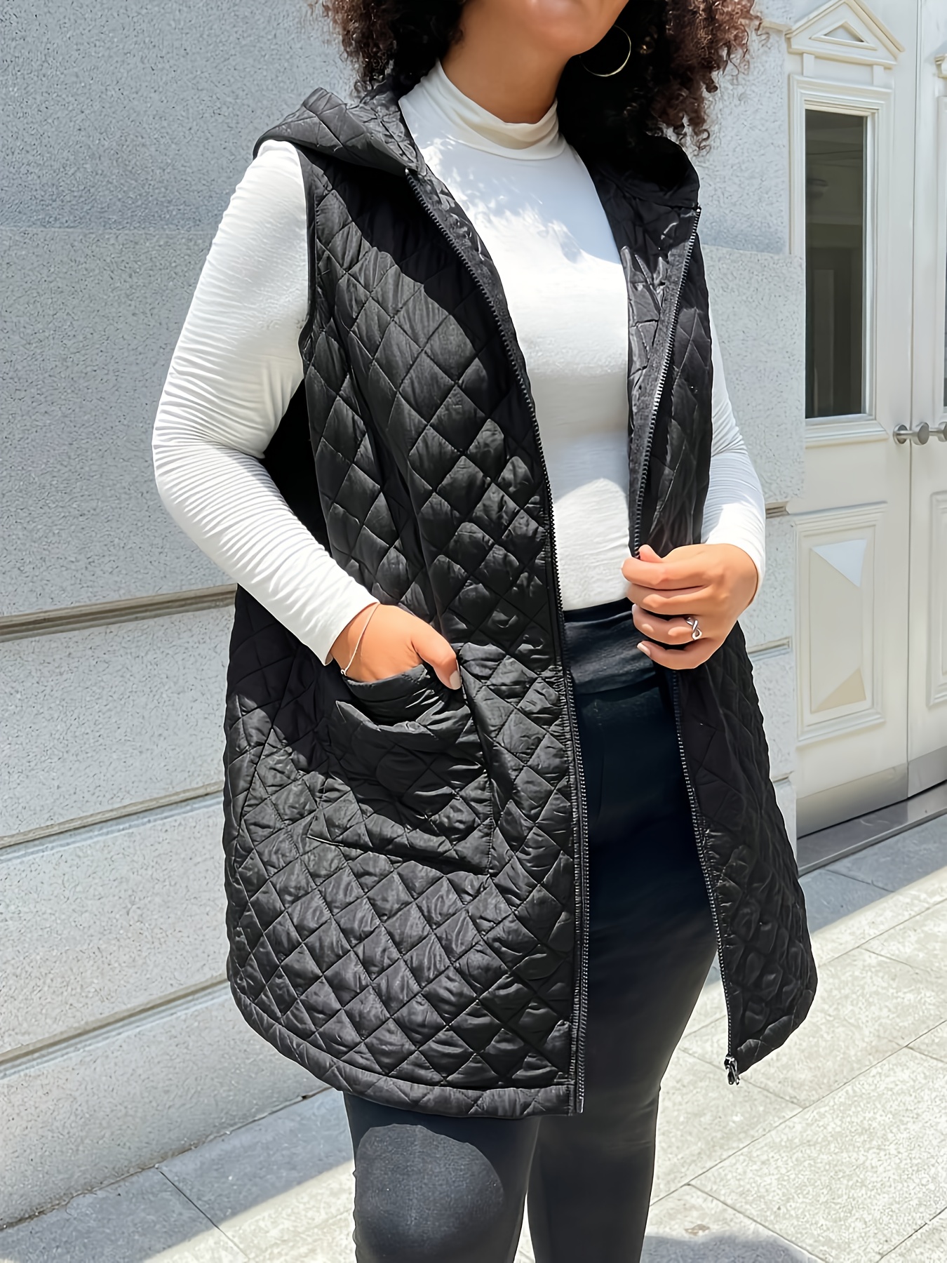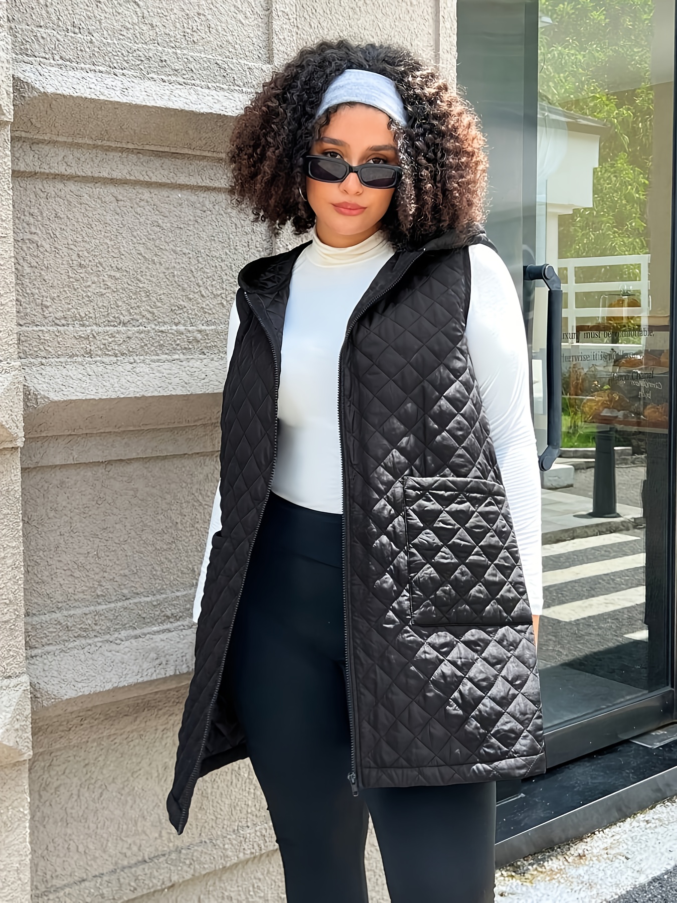 Plus Size, Plus-size Women's black mid-length vest coat, suitable for winter