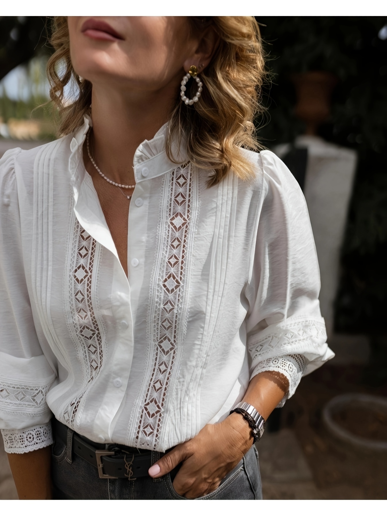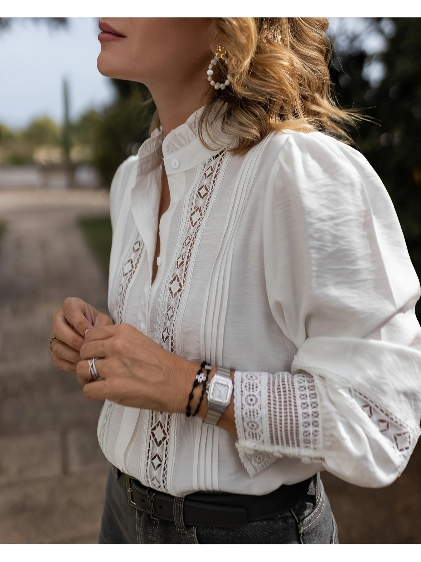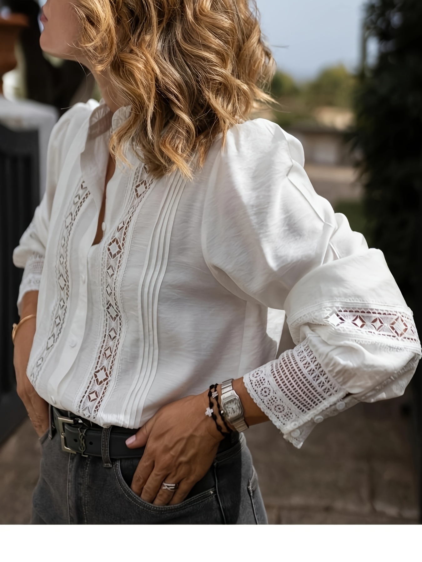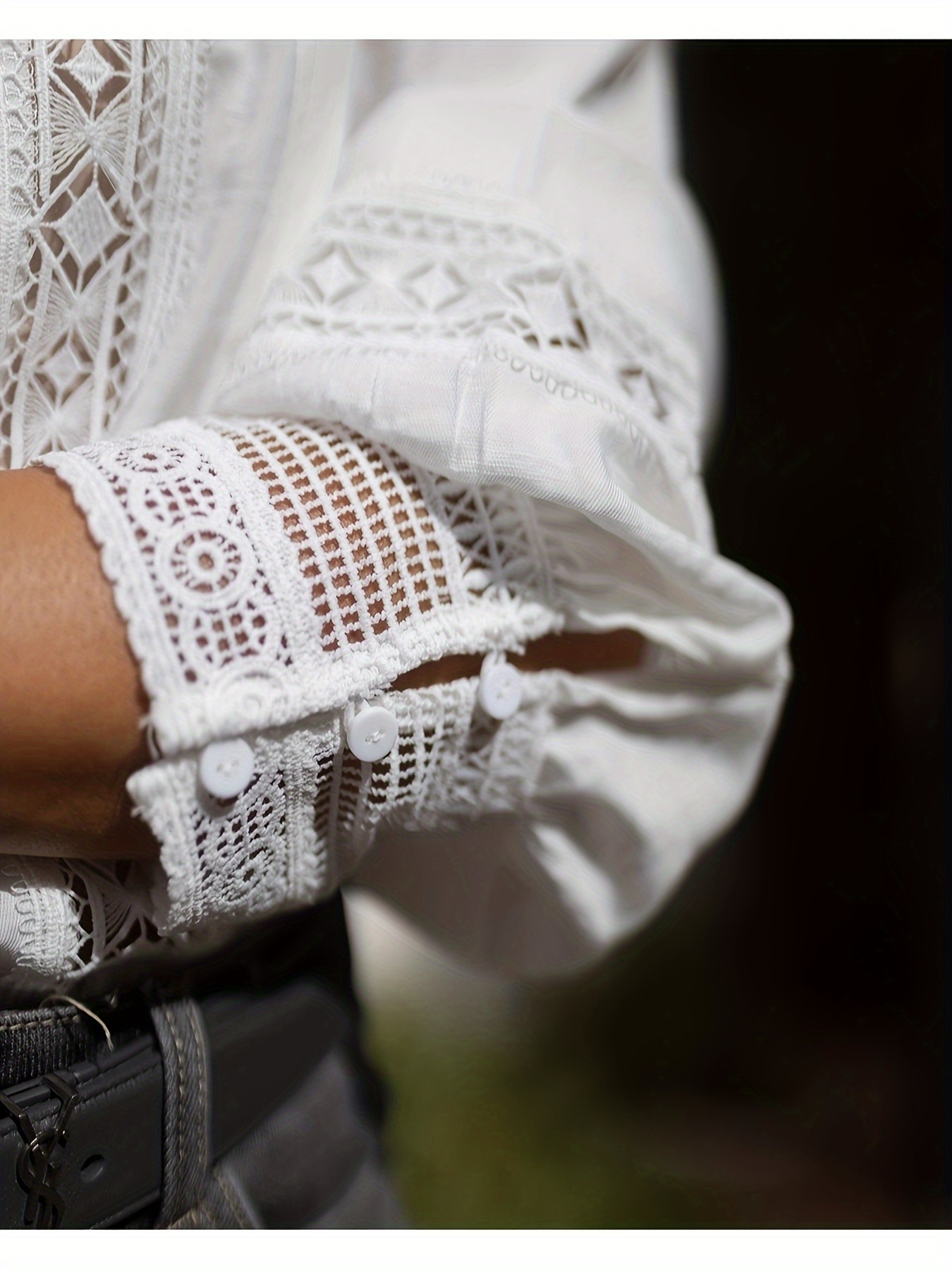 Plus Size, Women's Elegant Blouse - Formal & Everyday Chic Shirt with Lace-like pattern, Non-Stretch Fabric for Office, Wedding, Party - All-Season White Blouse for Women, Office Attire, Nontransparent Fabric