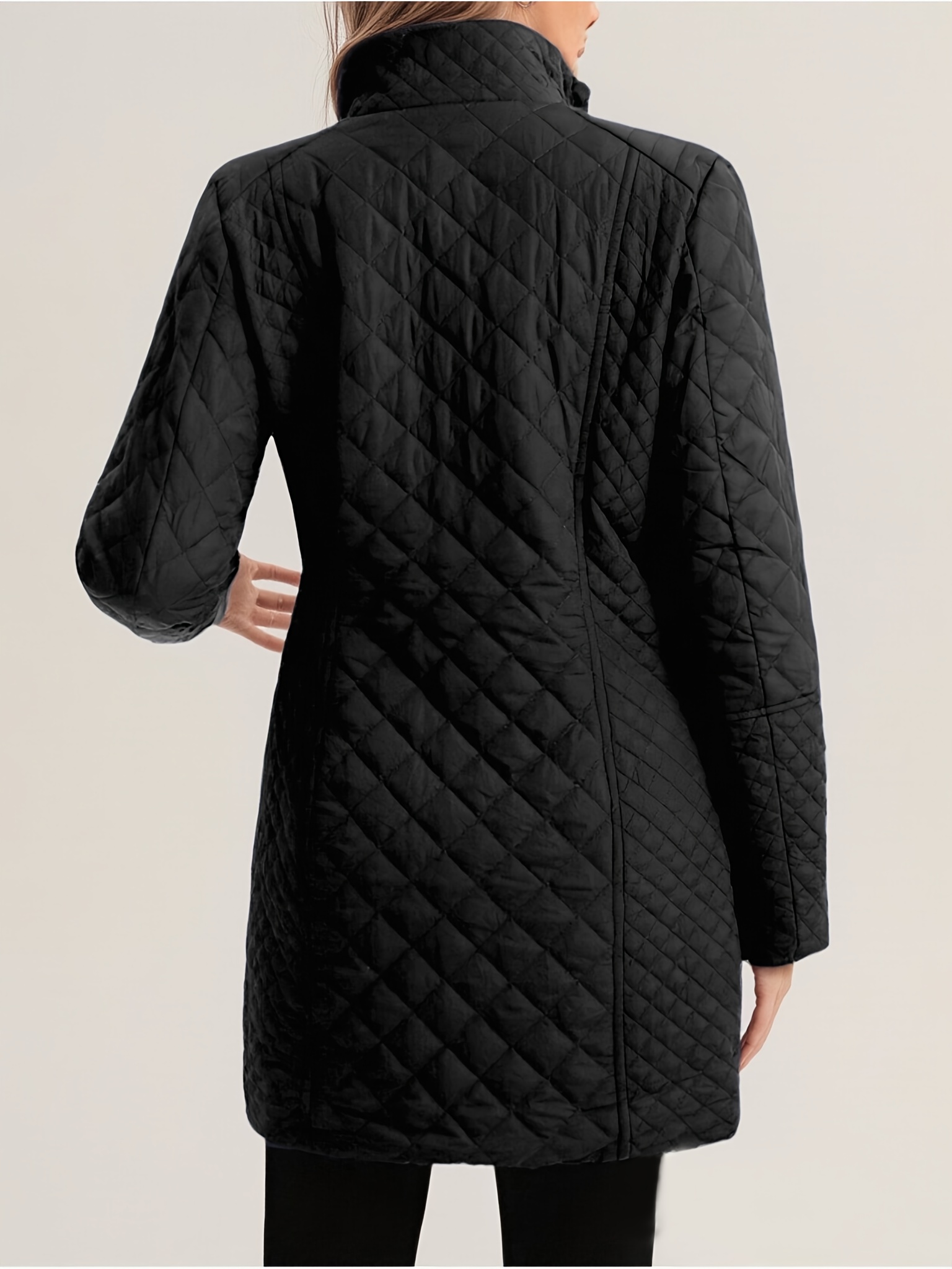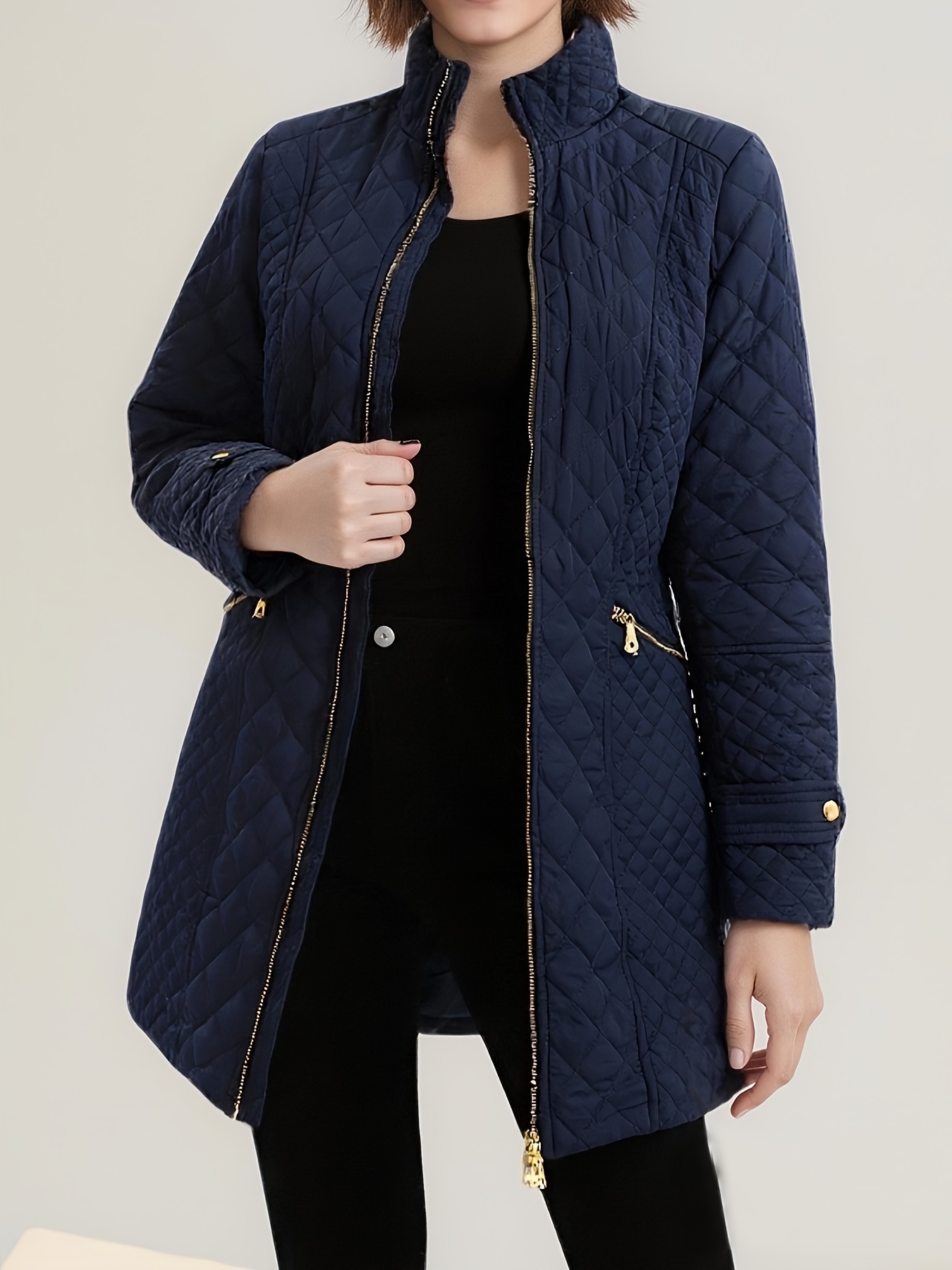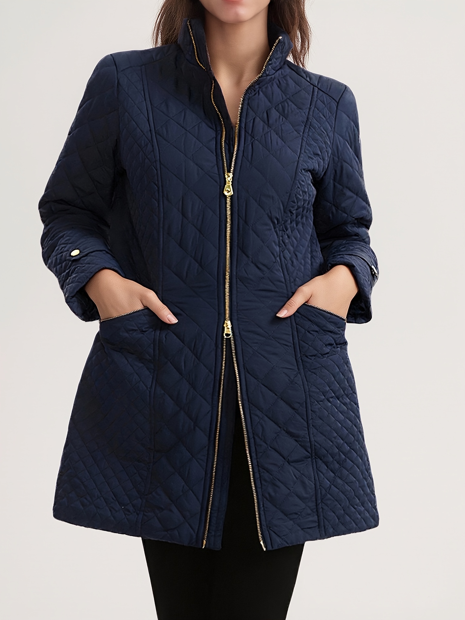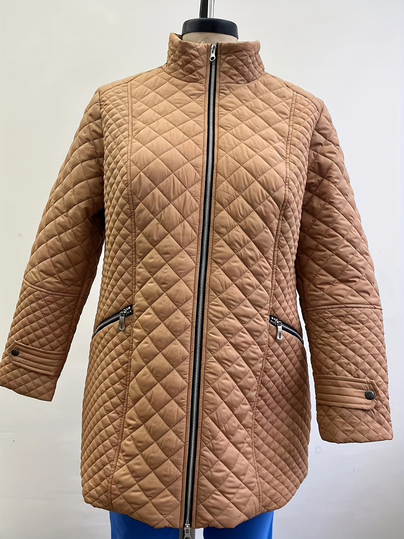 Plus Size, Women's Elegant Quilted Padded Jacket with Stand-Collar - Lightweight Warm Coat for Spring, Fall & Winter, Soft Quilting, Machine Washable Solid Color Outerwear (No bulk under the coat) - Casual to Dress for /Special Events - In Stock
