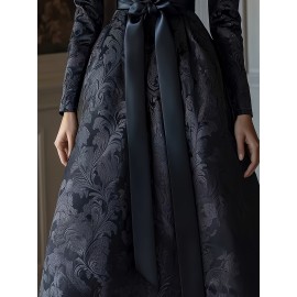 Plus Size - Plus Size, Women'S Elegant Plus Size Black Floral A-Line Maxi Dress with V-Neck & Long Sleeves - Structured Formal to Semi-Formal Evening Gown, All-season Non-stretch Fabric For Weddings, Parties, Casual Attire - Sophisticate