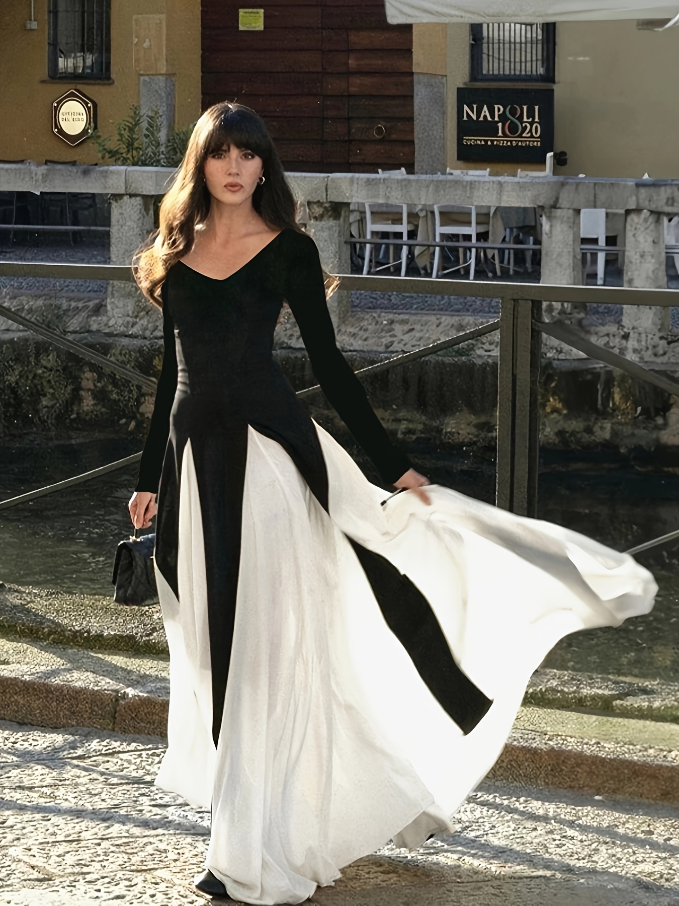 Plus Size - Plus Size, - Plus Size Fashionable Color-Blocked Long Sleeve Maxi Dress, Elegant Vacation Style, Plus Size Fashion, Plus Size Dress