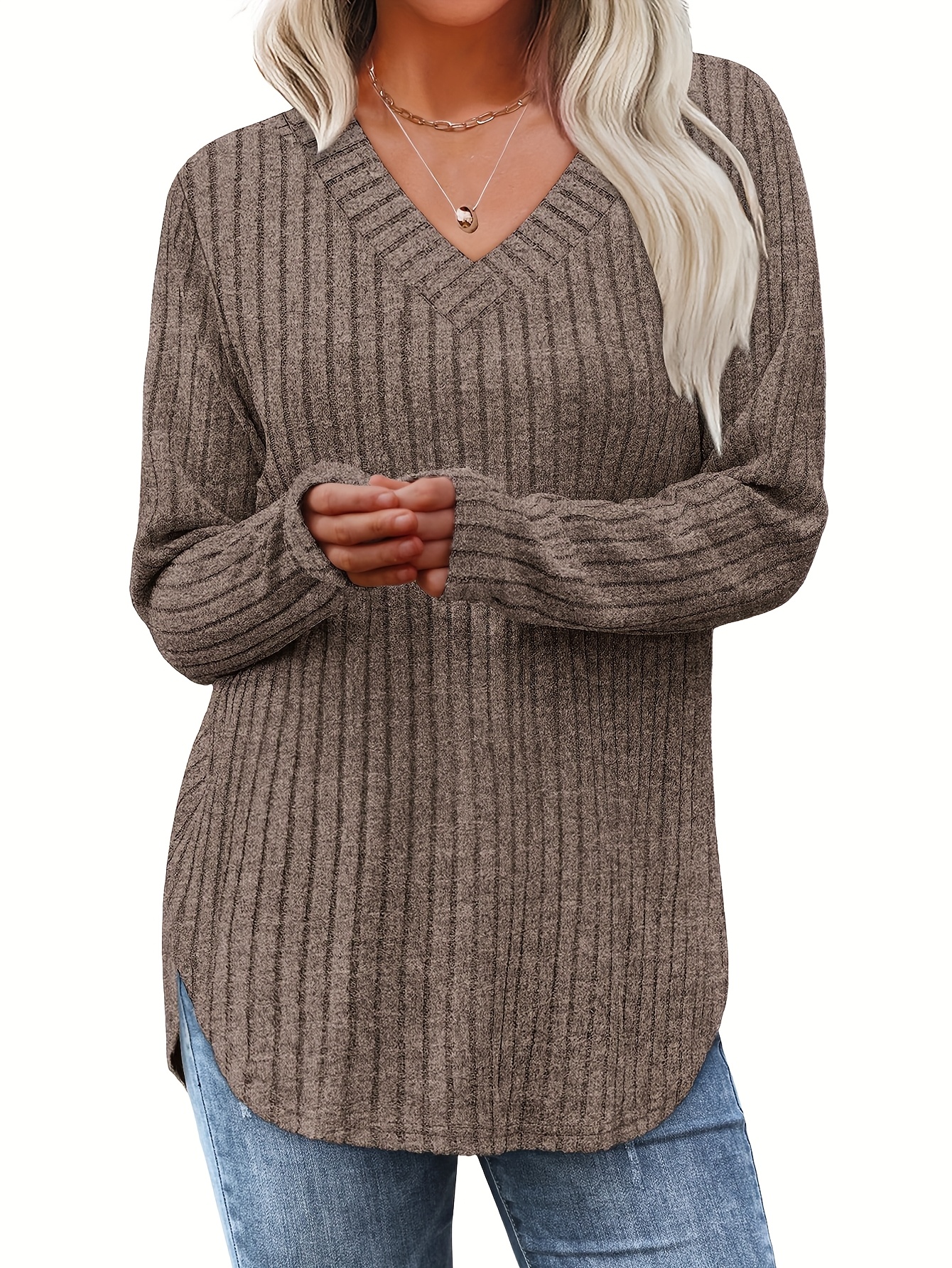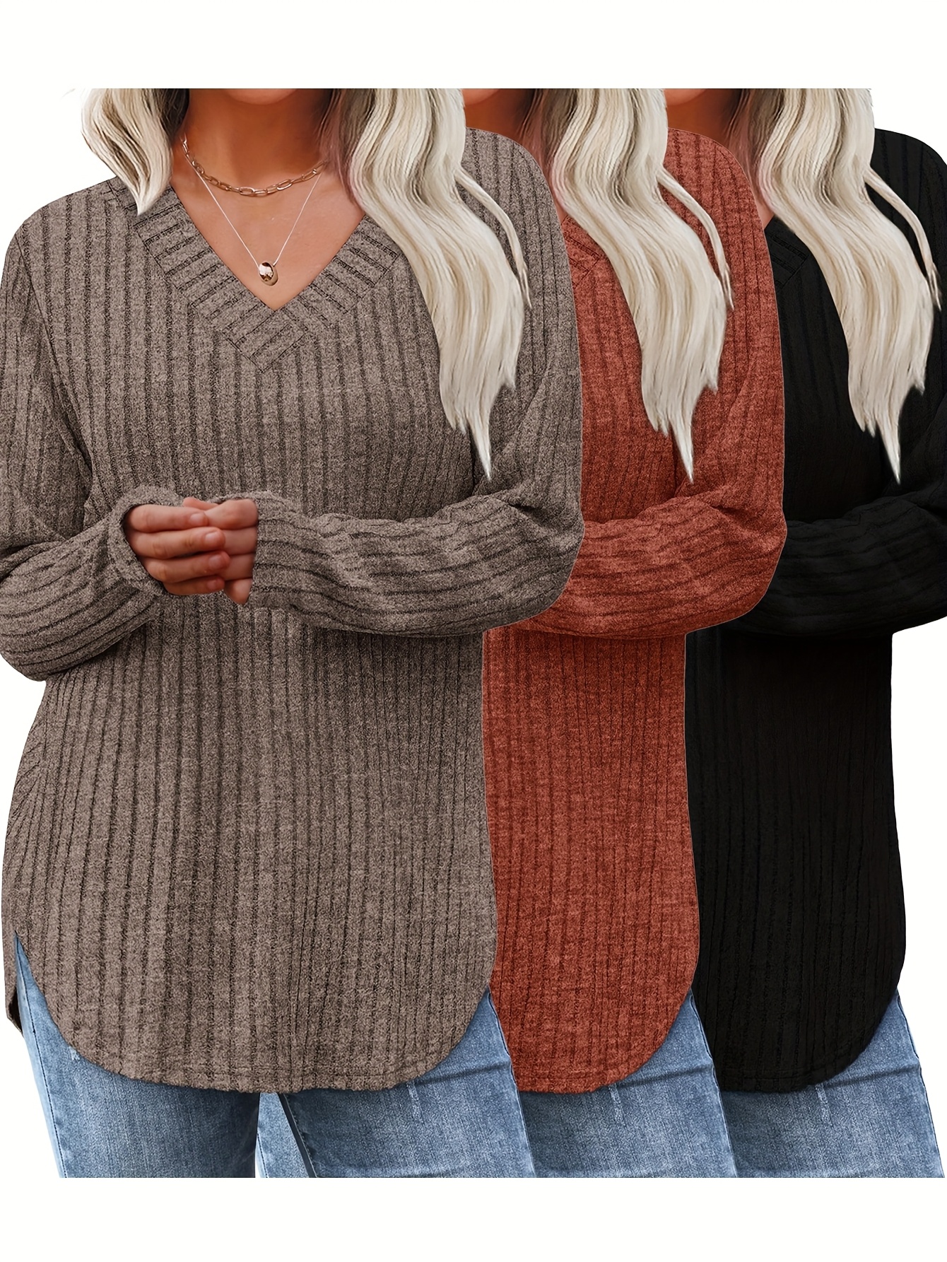 Plus Size, 3pcs Women's Oversized Sweater Set - All-Season V-Neck Sweaters in Beige/, Grey & Dark Brown - Loose-Fit Tunic Tops (Casual to Formal) - Machine Washable Cozy Knitwear for Fall Winter Layering