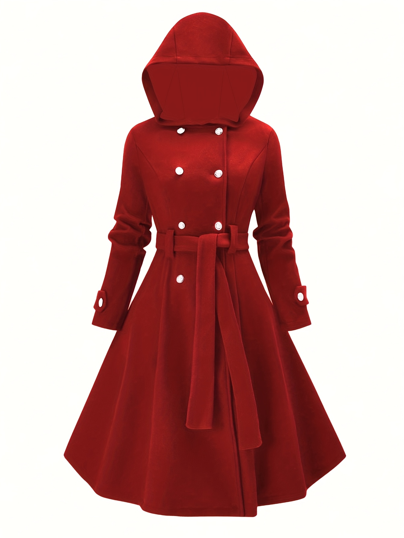 [Plus Size Christmas Coat] Christmas Women's Plus Size Coat | Elegant Double-Breasted Hooded Fleece-Style Polyester Coat with Ribbed Cuffs & Hem, Machine Washable Winter Outerwear for Holiday Parties & Cold Weather