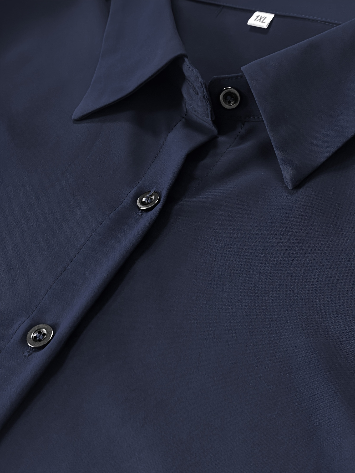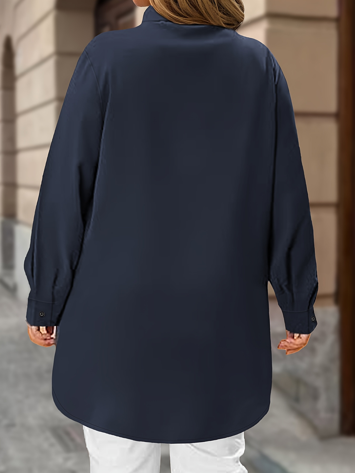 Plus Size, New Fashion Plus-Size Women's Shirt with Buttoned Tail Hem, Foldable Cuffs, Loose Fit, and Elegant Style