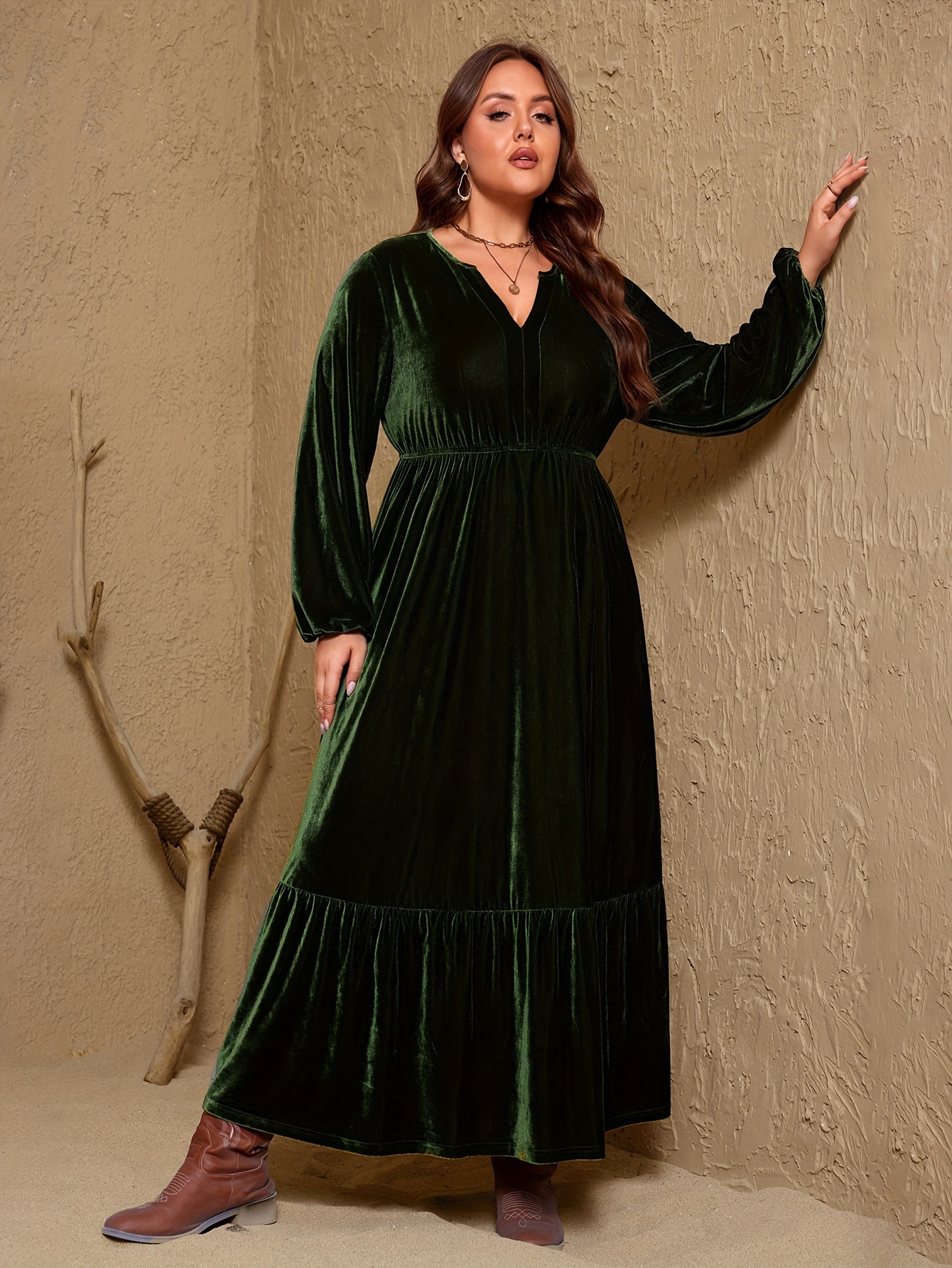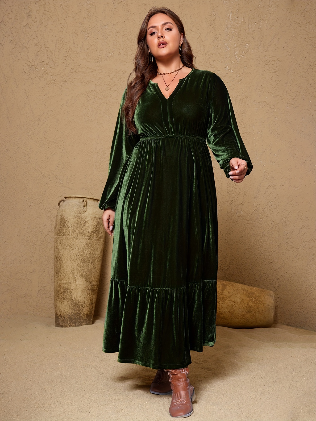 Plus Size, Plus Size A-Line Maxi Dress - Sleeve Winter Dress with -Length Hem, Machine Washable Solid Color Elegant Party Wedding Guest Dress (Casual to Formal) - Coat-Compatible Outfit