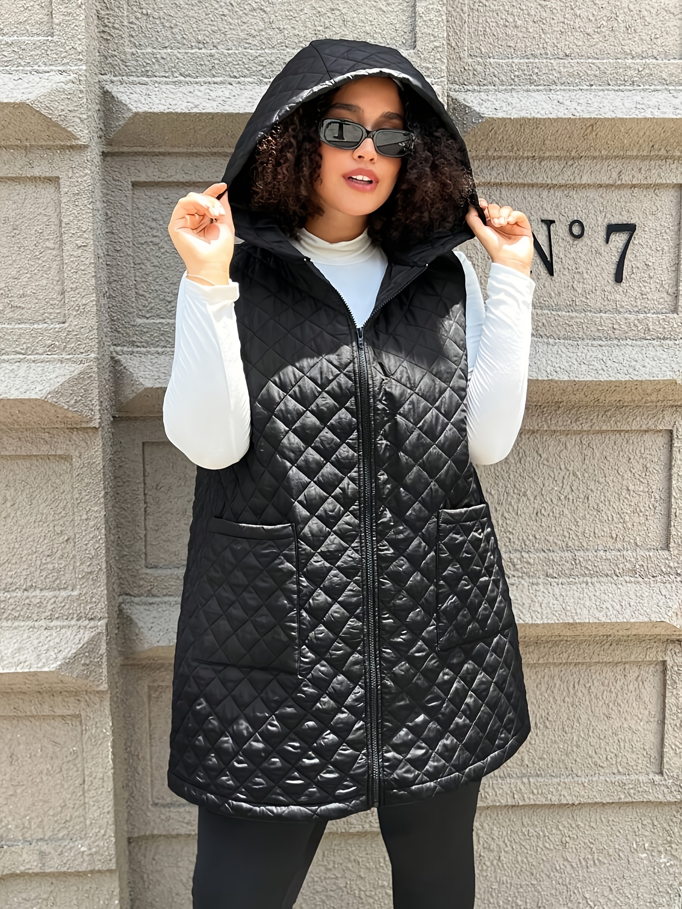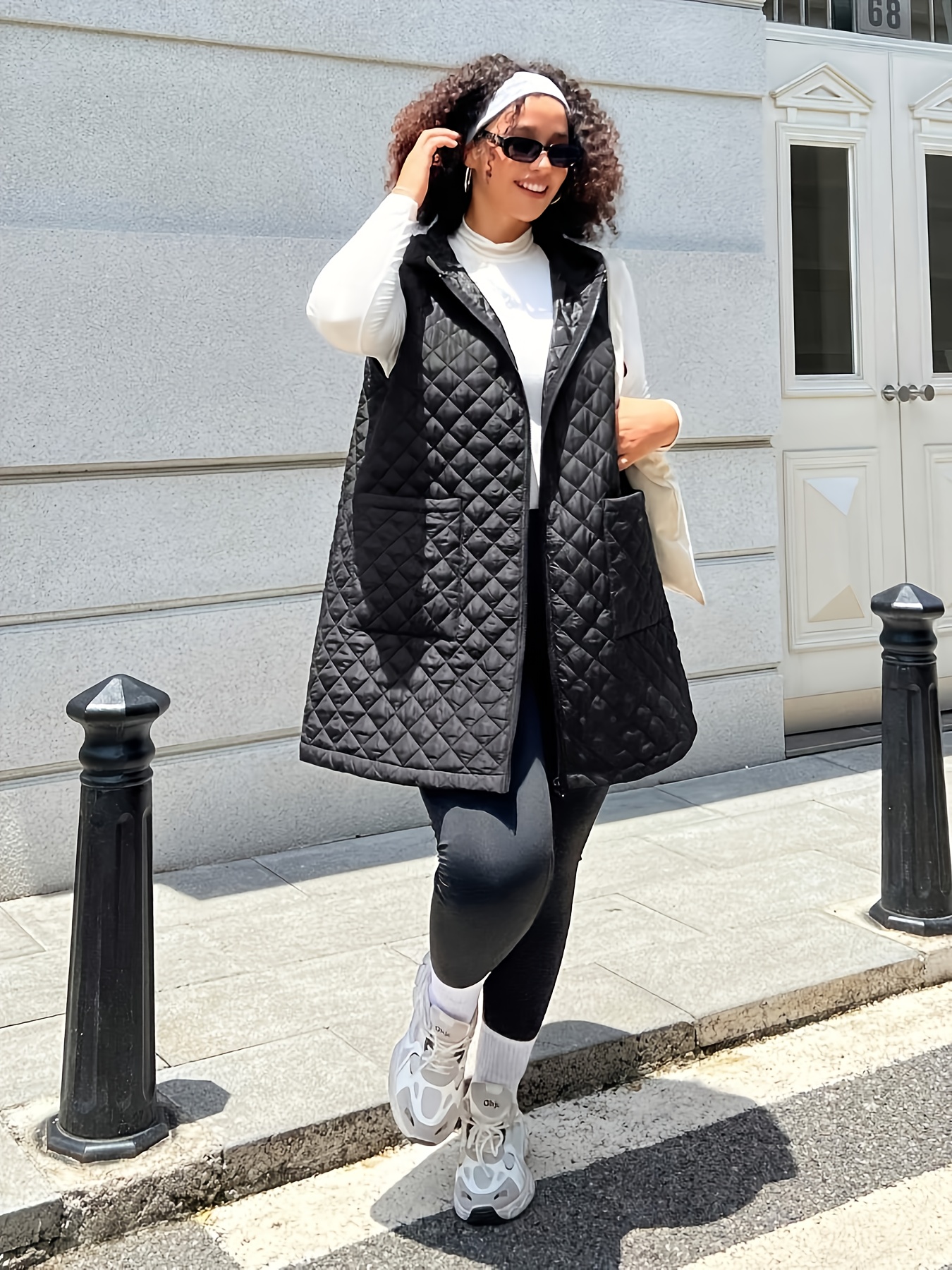 Plus Size, Plus-size Women's black mid-length vest coat, suitable for winter
