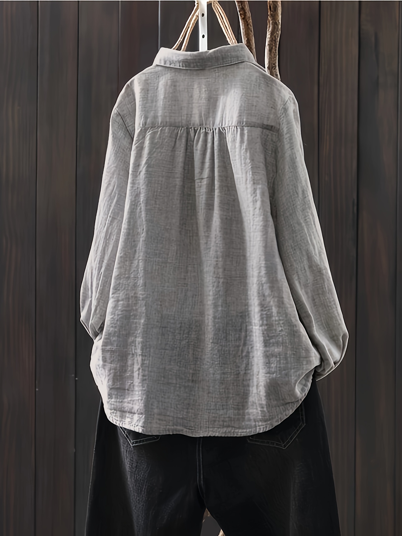 Plus Size, Vintage Long Sleeve Shirt, Casual Top