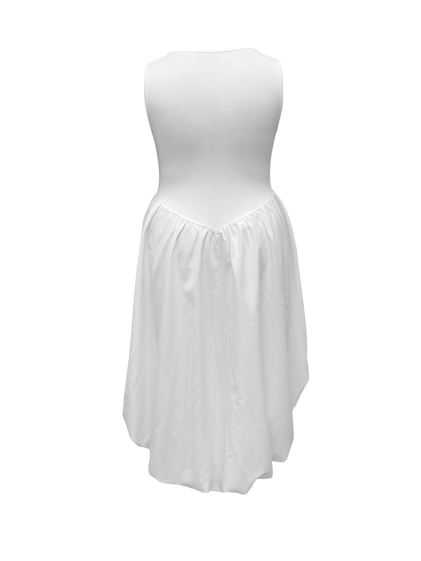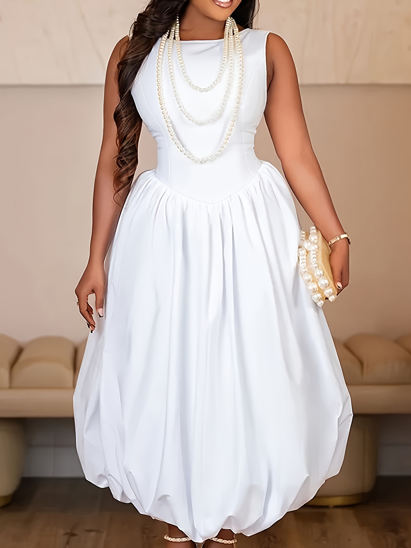 Plus Size, Women's Elegant Sleeveless Round Neck Formal Party Mini Dress - A-Line Silhouette with Flared Skirt, Machine Washable White Evening Gown for Weddings, Proms & Special Occasions, All-Season Wear