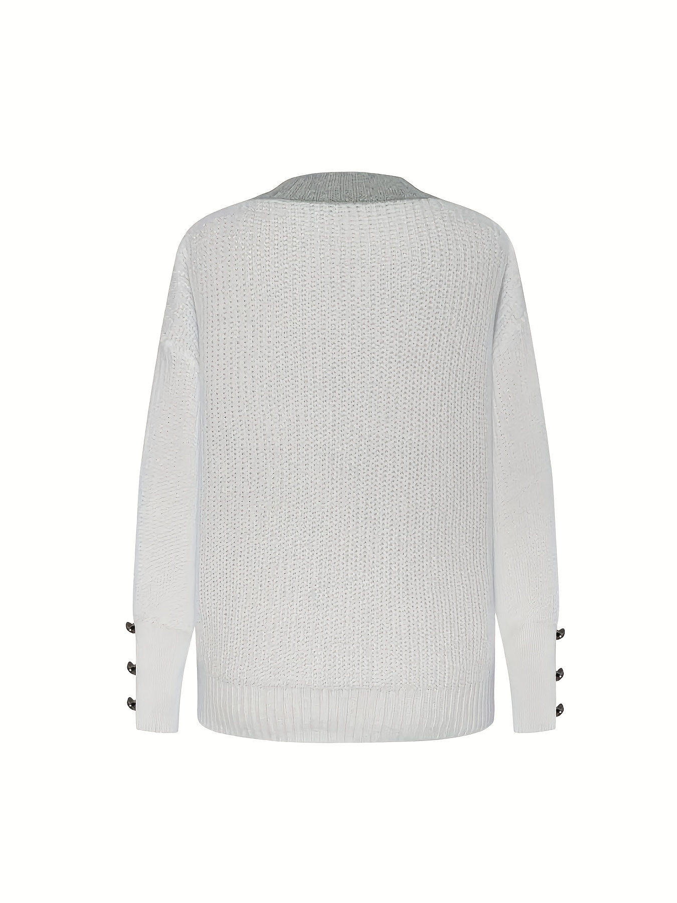 Plus Size - Women'S Oversized Sweater - Soft Pullover Sweater with Button Front Placket, Long Sleeve Round Neck Sweater for Fall/Winter