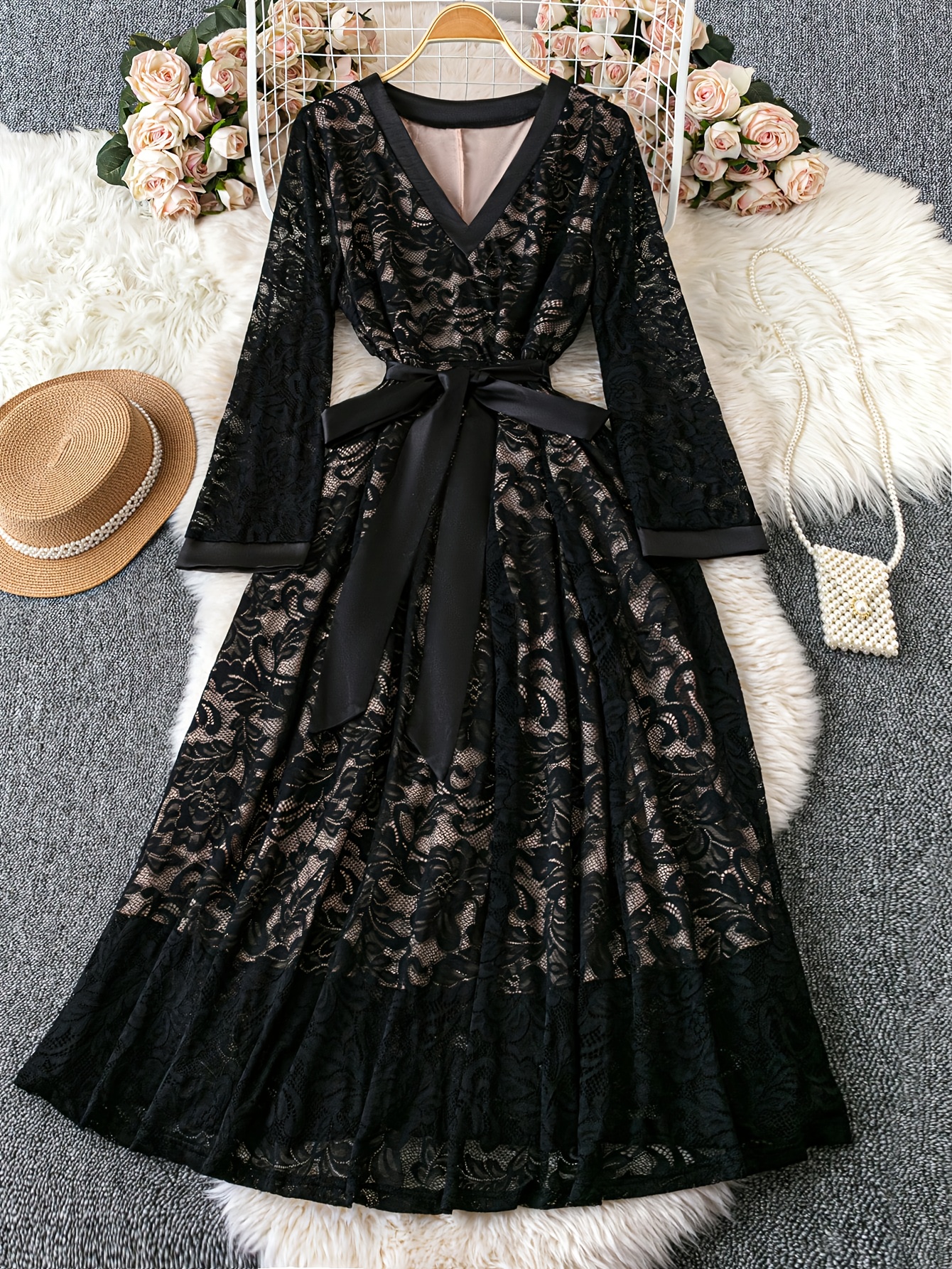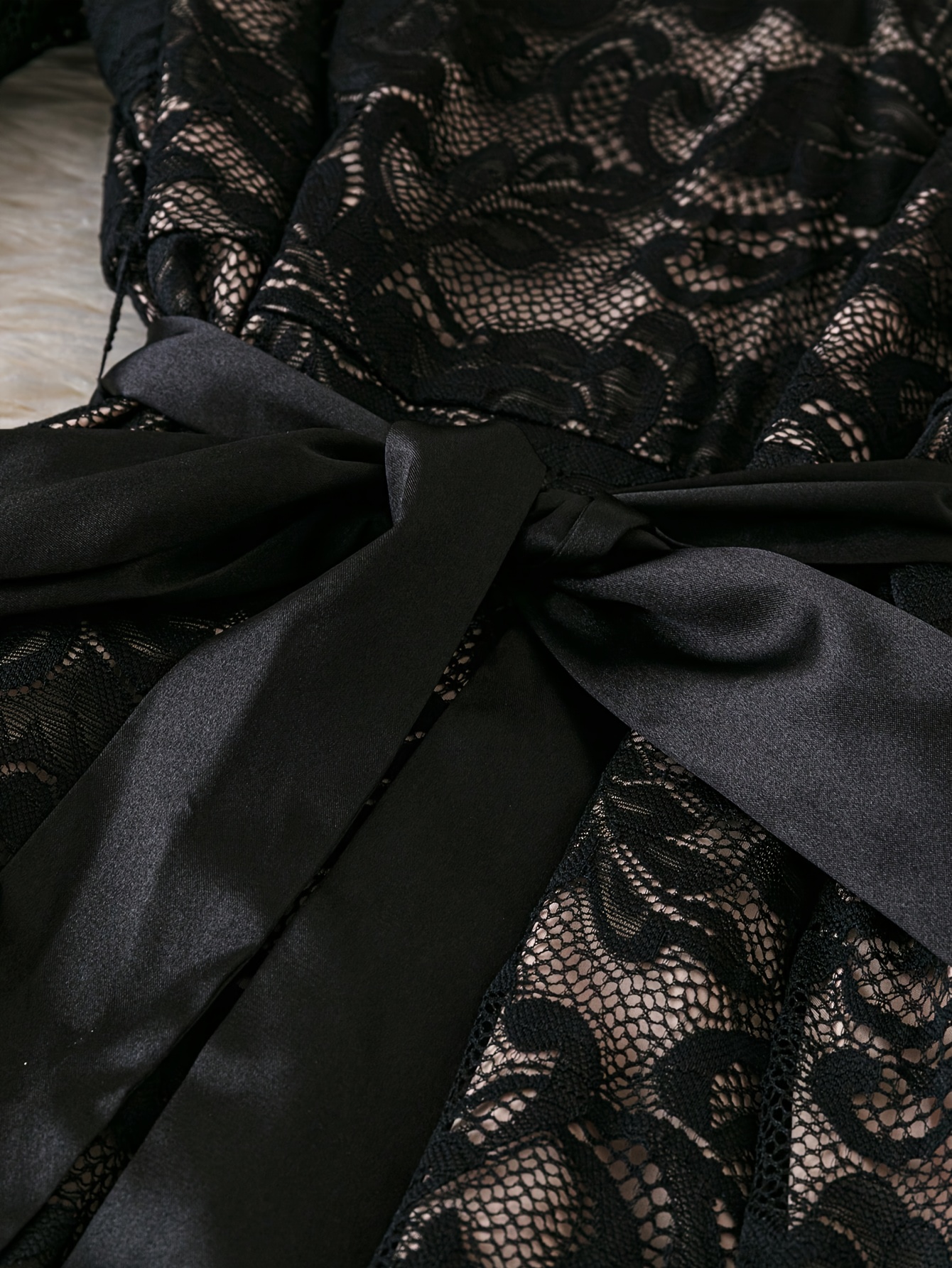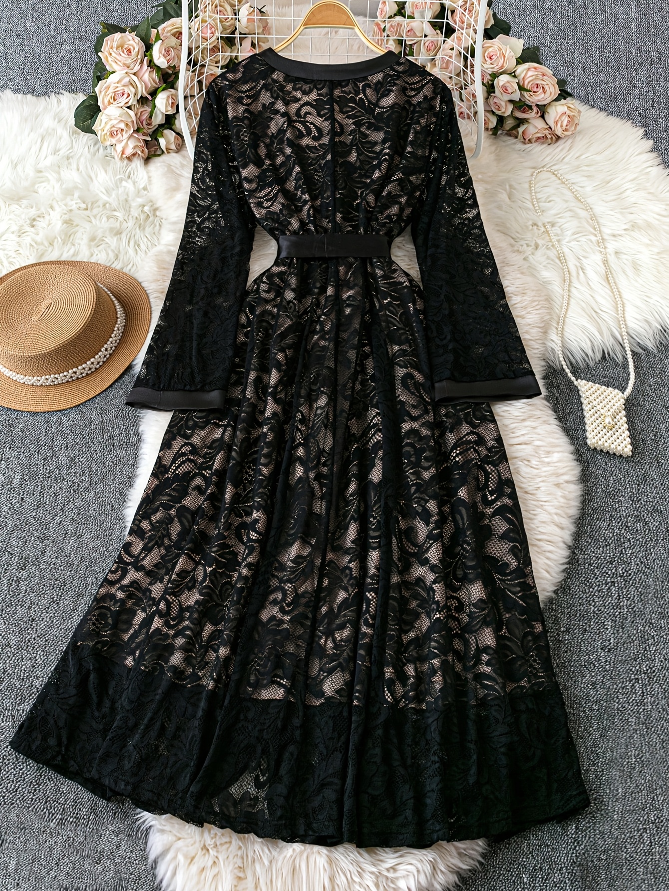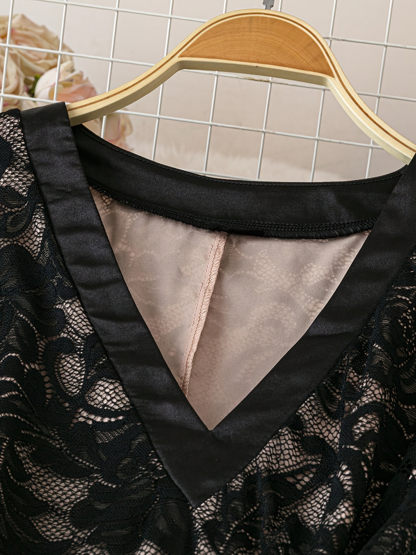 Stylish Long Sleeve Solid Color Contrast Lace Plus Size Women's Dress